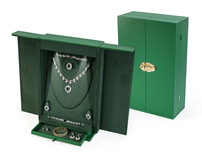 Customized High-End Green Jewelry Box, Double-Door Large-Capacity Jewelry Storage Box, Necklace & Earring Display Box