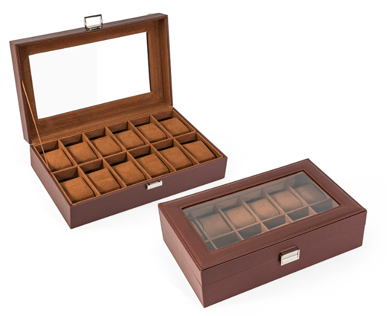 Customizable 12-Slot Leather Watch Box, Transparent Window Watch Storage & Display Box, Luxury Wristwatch Collection Box